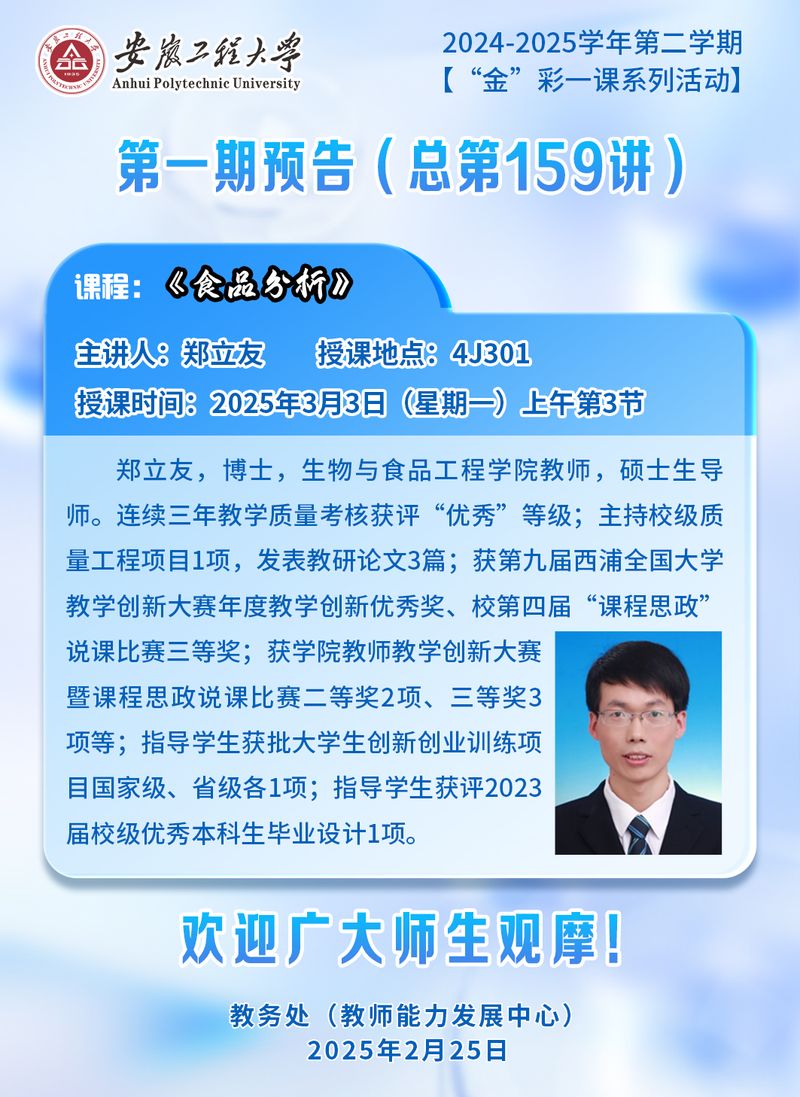 2024-2025学年第二学期【“金”彩一课系列活动】第一期预告(总第159讲)