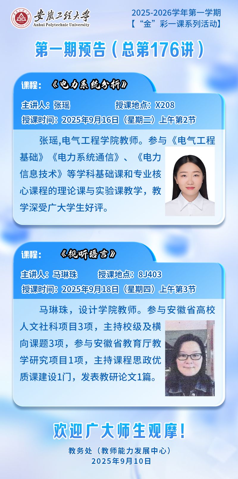 2025-2026学年第一学期【“金”彩一课系列活动】第一期预告(总第176讲)
