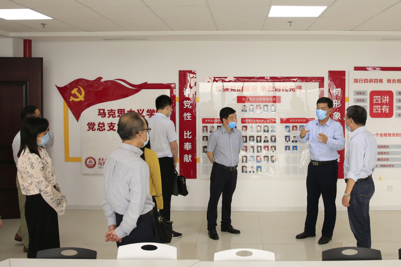 会上,马克思主义学院党总支书记王勇智从学院简介、党建工作、发展工作、特色与亮点等四个方面进行汇报。会前,庆承松一行实地考察了马克思主义学院的文化墙、党员活动室、资料室等场地,并到各个教研室看望了一线教师。