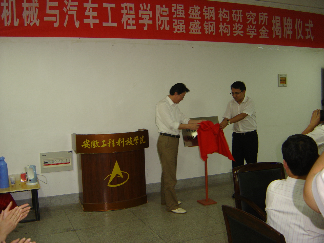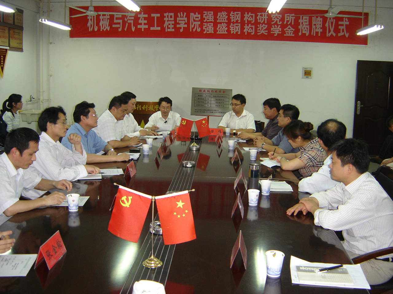 机械与汽车工程学院隆重举行强盛钢结构设计研究所、强盛钢构奖学金揭牌仪式