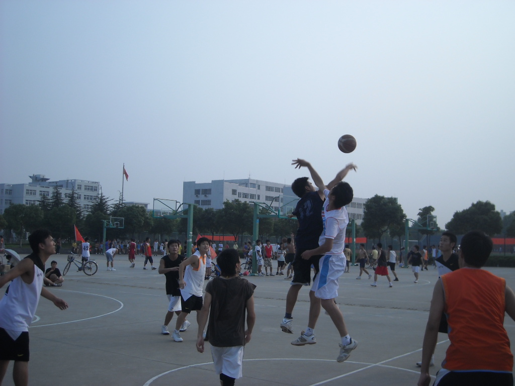 天气炎热,同学们的激情却丝毫不减。一个帅气的投篮,一次华丽的转身,毕业生们尽展自身的绝技,流露出的是无语的青春,是男儿的本色。非毕业生也毫不懈怠,任凭汗水飘洒,身影百转,为的只是心中的那份豪爽。夕阳西下,金色校园里,最美的,还是操场上那一道道亮丽的弧线。比赛中,毕业生代表队凭借默契的配合、密不透风的防守一路领先,而非毕业生代表队也毫不示弱,一直紧咬比分。最终,毕业生代表队以50:48的赢得了比赛。