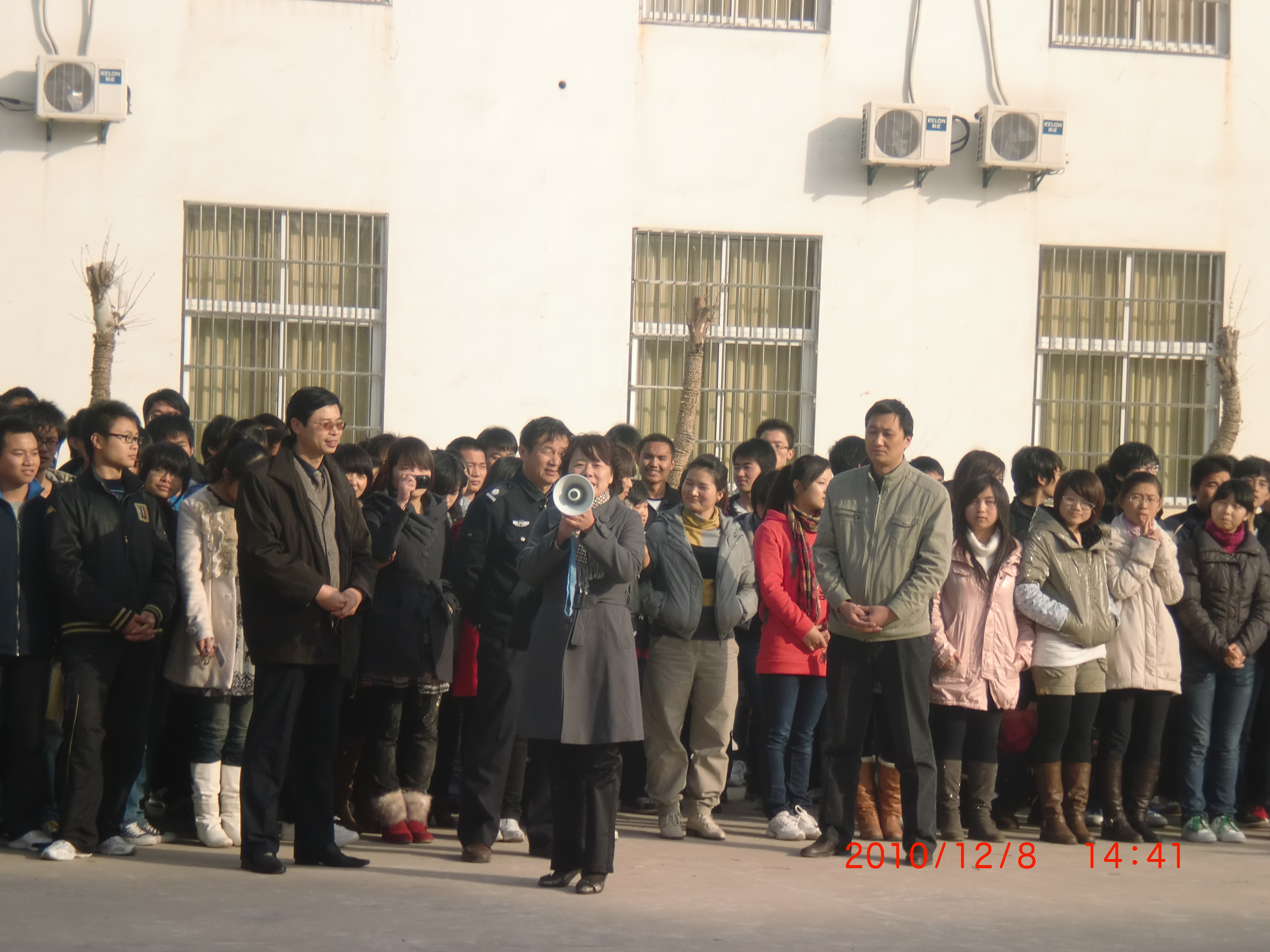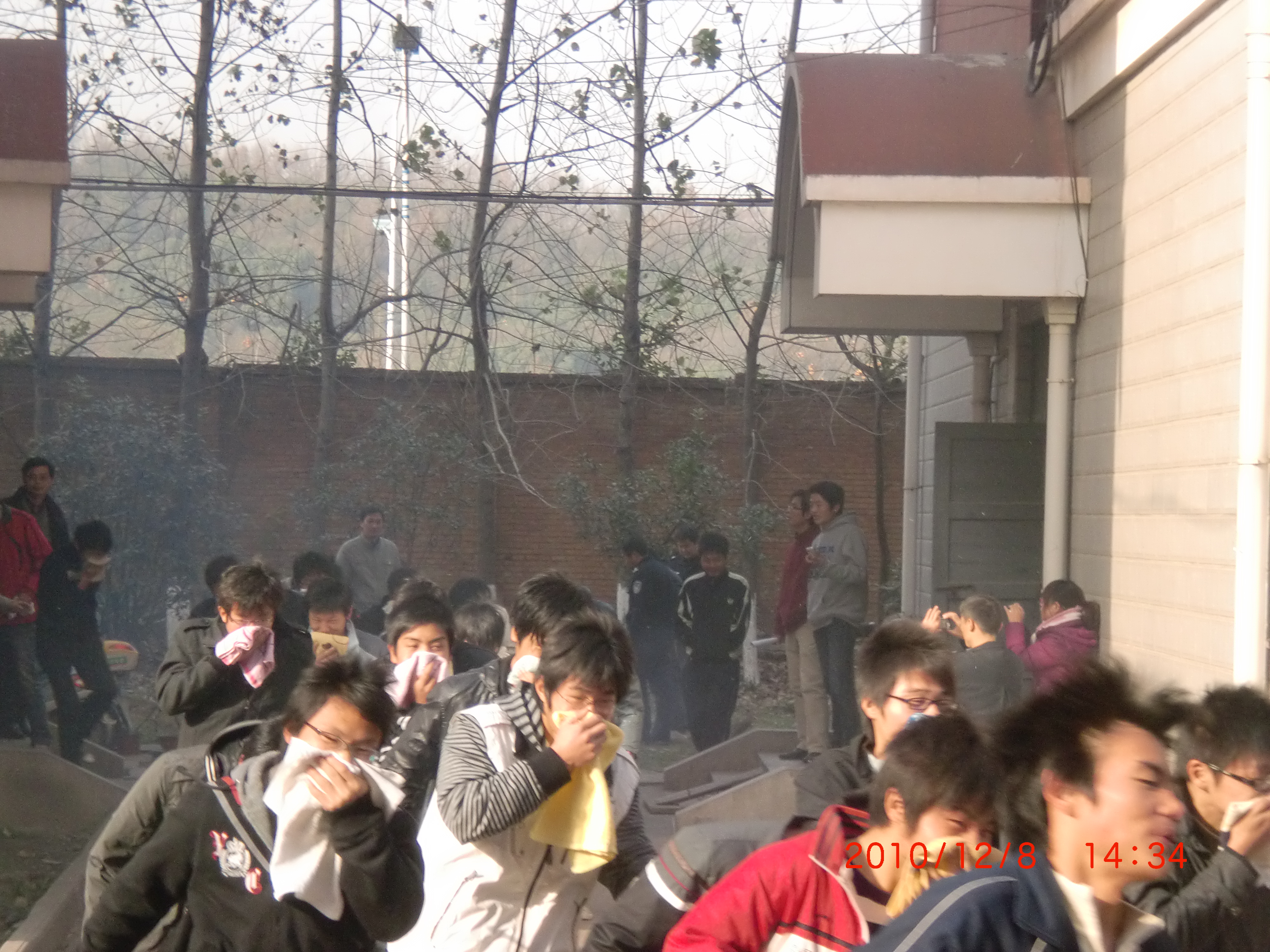 128月下午,纺织服装学院在男生宿舍15号楼成功开展2010级新生防火疏散演练活动。演练活动得到了校保卫处、学生处和院领导的大力支持下,院党委书记余新霞、副书记刘金斌、校保卫处副处长邬海量、校学生处处长助理胡家增及新生辅导员李恒奎老师等亲临活动现场进行指挥督导。