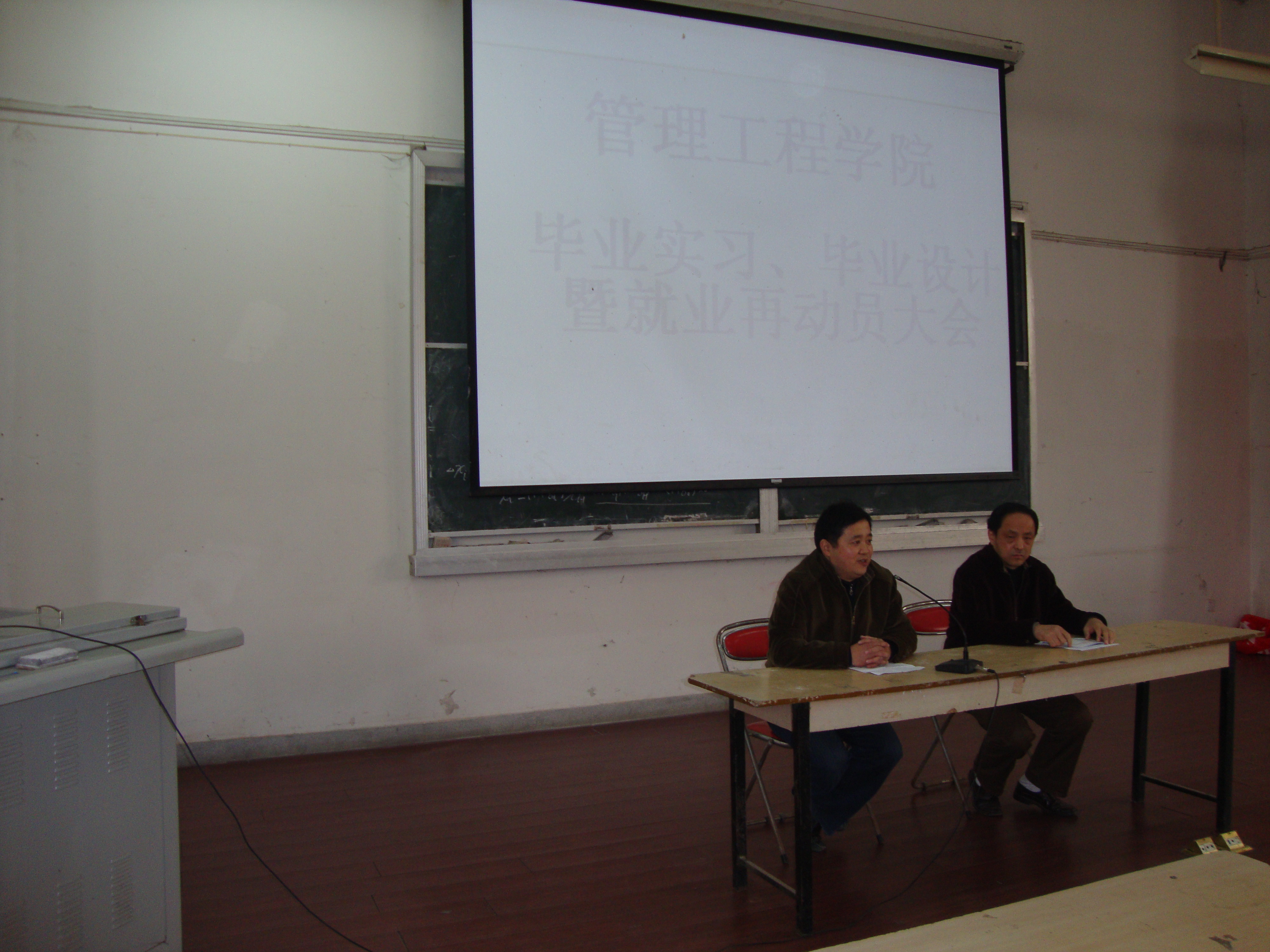 2011年3月9日下午,管理工程学院召开毕业实习、毕业设计暨就业再动员大会,管理学院副院长汪张林、副书记张开炳等参加了会议。