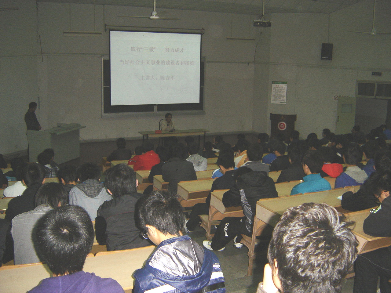 318晚,机械与汽车工程学院团委在2J报告厅举办了“践行‘三做’,努力成才”专题讲座。学院校友陈吉军应邀担任本次讲座的主讲人,院团委书记黄炜,辅导员王彦青、高倩莅临讲座现场。该院300多名大一学生倾听了讲座。