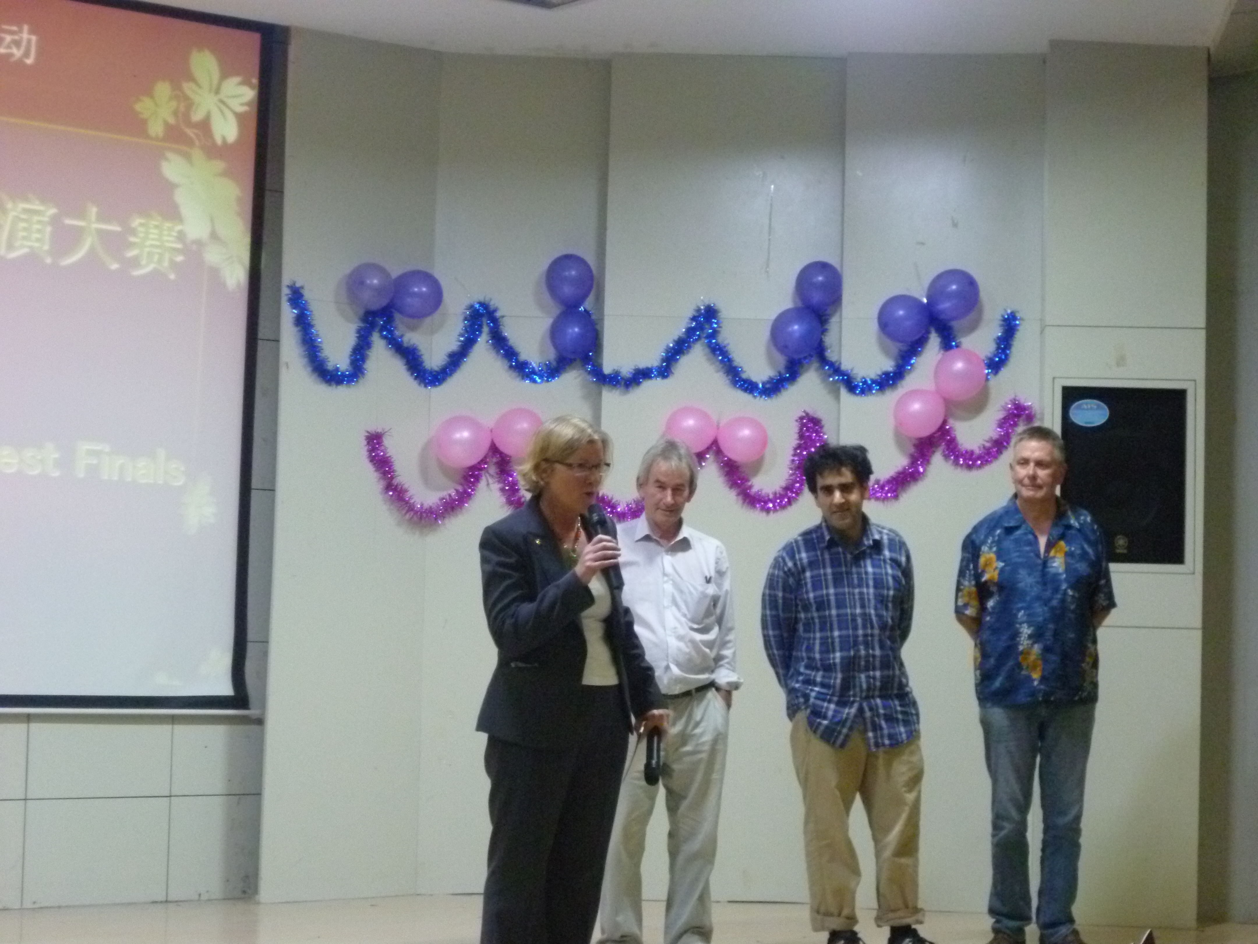 567点,由外国语学院主办的英语短剧表演大赛决赛在学术报告厅隆重举行。担任本次大赛评委的是外国语学院专业教师和外教。出席比赛现场的嘉宾有外国语学院党总支副书记谈丽华、外国语学院团总支书记李烨及全体辅导员。