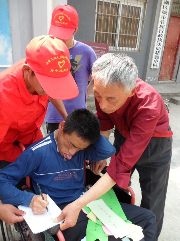 在活动开始之前,为了给残疾朋友们提供一个更好的活动环境,队员们协助社区工作人员积极布置活动现场,并陪同残疾朋友们到指定的位置就坐。上午9:00,活动在 “感恩的心”这首优美的旋律中正式开始。志愿者们先陪同残疾朋友们观看了精彩的节目演出,并为残疾朋友们送上茶水。随后,志愿者们陪同残疾朋友一起参与到竞猜谜语的活动中,与他们一起体验竞猜的乐趣,分享胜利的喜悦。11:00,活动在和谐融洽的氛围中结束。