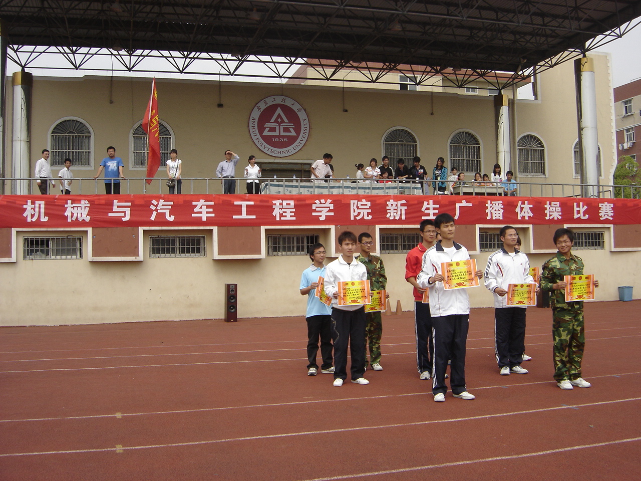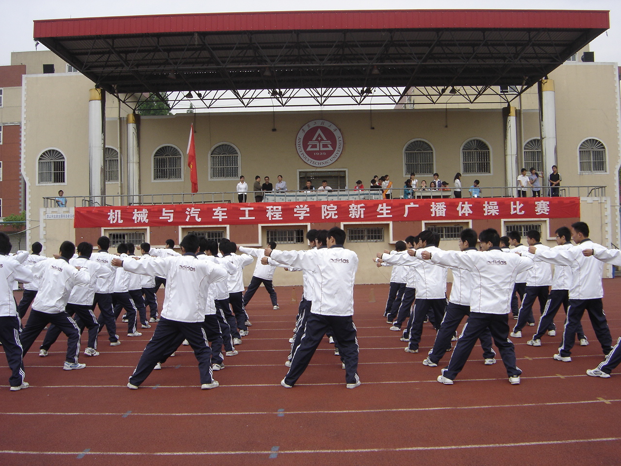 5月14日上午,机械与汽车工程学院2011年新生广播操比赛在校塑胶操运动场隆重举行。莅临本次比赛现场的嘉宾有院党委副书记邓英扣,以及辅导员王彦青、高倩老师。体育学院王建、许思明老师应邀担任此次比赛的评委。