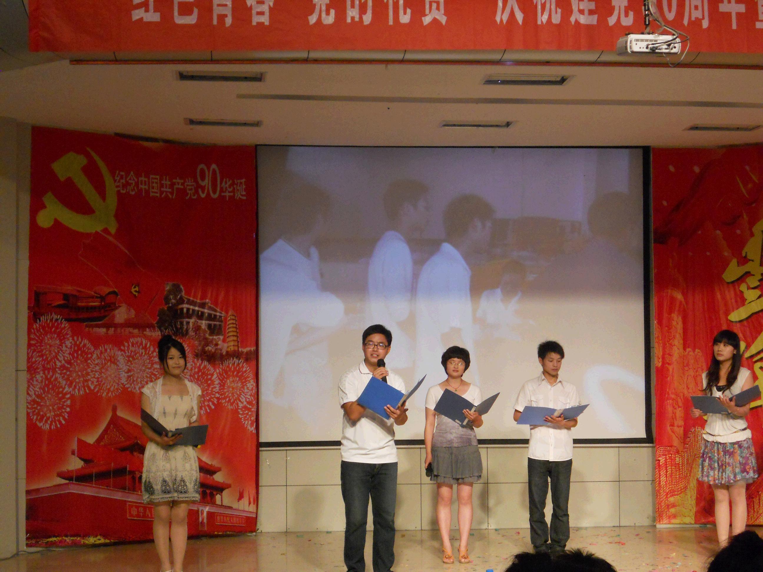 值此建党90周年之际,由人文学院团委主办、学生会承办的“红色青春·党的礼赞”庆祝建党90周年暨欢送毕业生晚会于5月27日晚在学术报告厅举行。人文学院党委书记倪谷村、副院长李卫华、党委副书记谢景慧、团委副书记彭海燕以及辅导员鲍琴、李德才应邀观看了比赛。