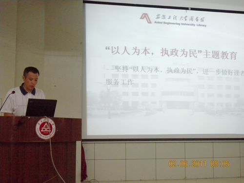 为了贯彻校纪字【20113号文件精神,将以人为本,执政为民主题教育活动开展的扎实有效,62日上午,图书馆召开大会,馆长徐军为全体馆员做了题为坚持以人为本,执政为民,进一步做好读者服务工作专题报告。
