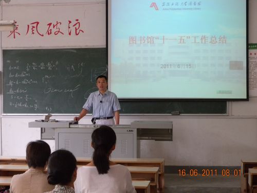 6月16,图书馆召开全体馆员大会,馆长徐军向全体馆员介绍了“