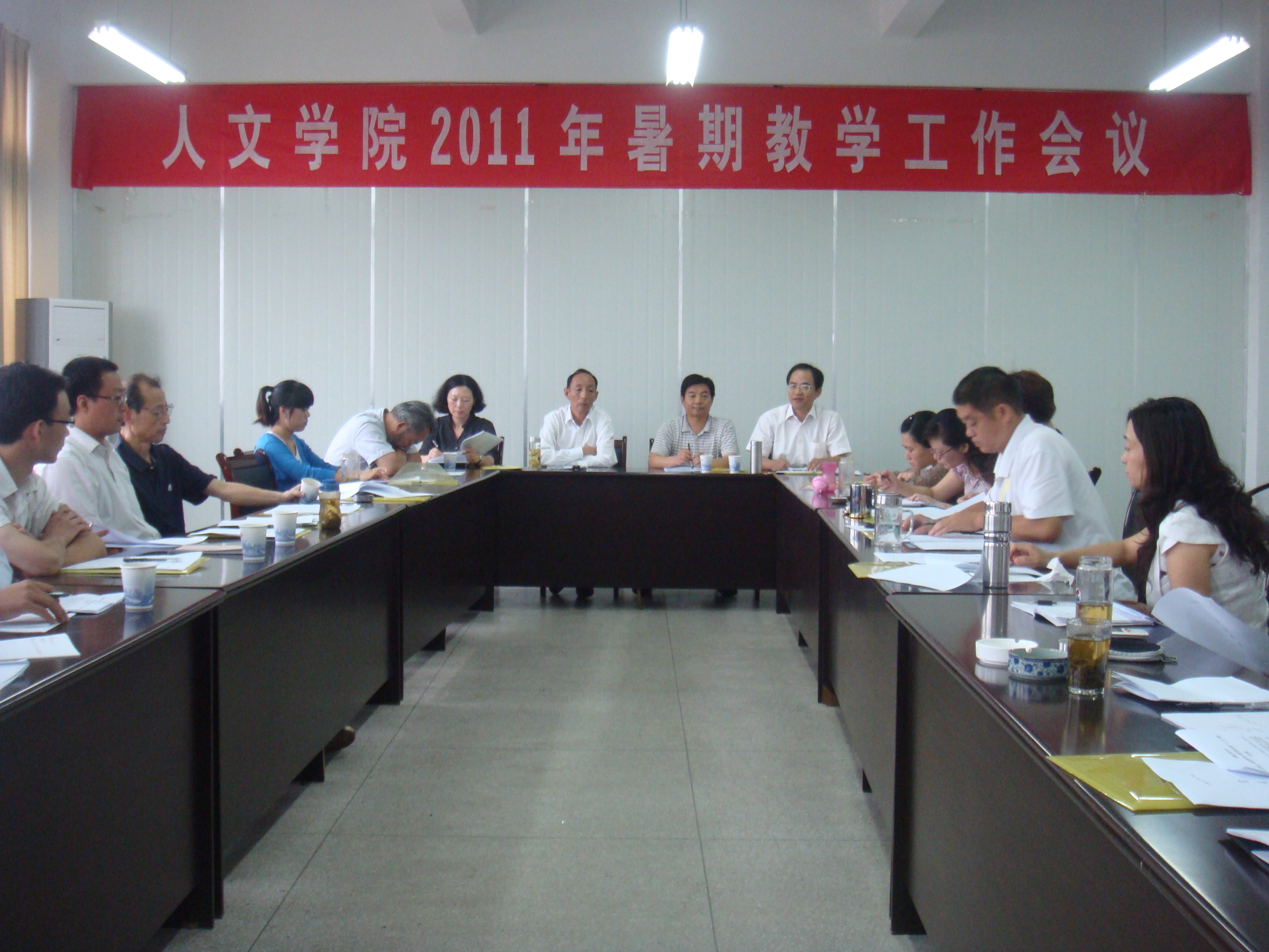 会议主要内容为:1、倪谷村书记作《学院“十二五”发展规划的研讨与编制》报告;2、李卫华作《思想政治理论课建设工程》的报告;3、高素质应用型人才培养与学风建设讨论;4、李卫华作人文学院教学工作会议总结。