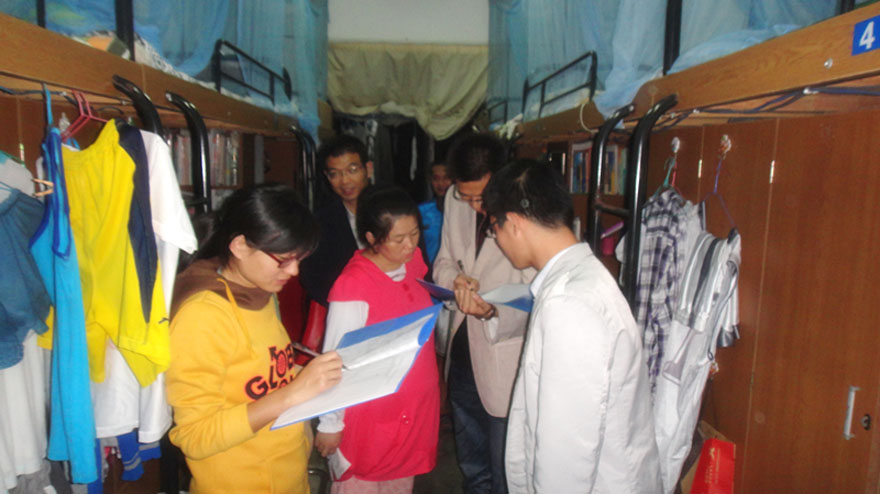 9月29日晚9:00,机电学院联合后勤服务集团分三组对学院学生宿舍男2#、5#、10#、12#、19#、20#、21#、22# 和女3#、6#、7#、8# 等12栋学生宿舍进行了全面检查。学院党委书记张国友、副院长伊长文和后勤服务集团总经理魏长顺、副总经理纪天新率领全体辅导员和集团各科室负责人参加了检查。