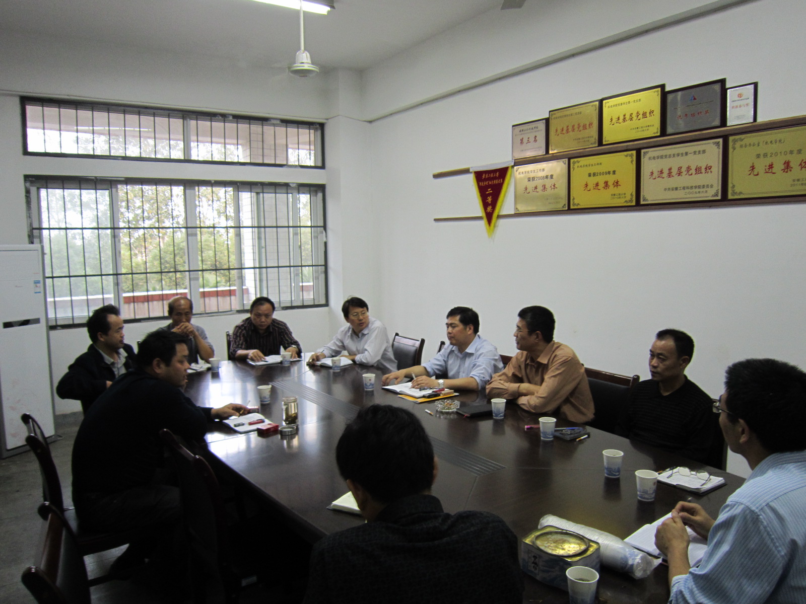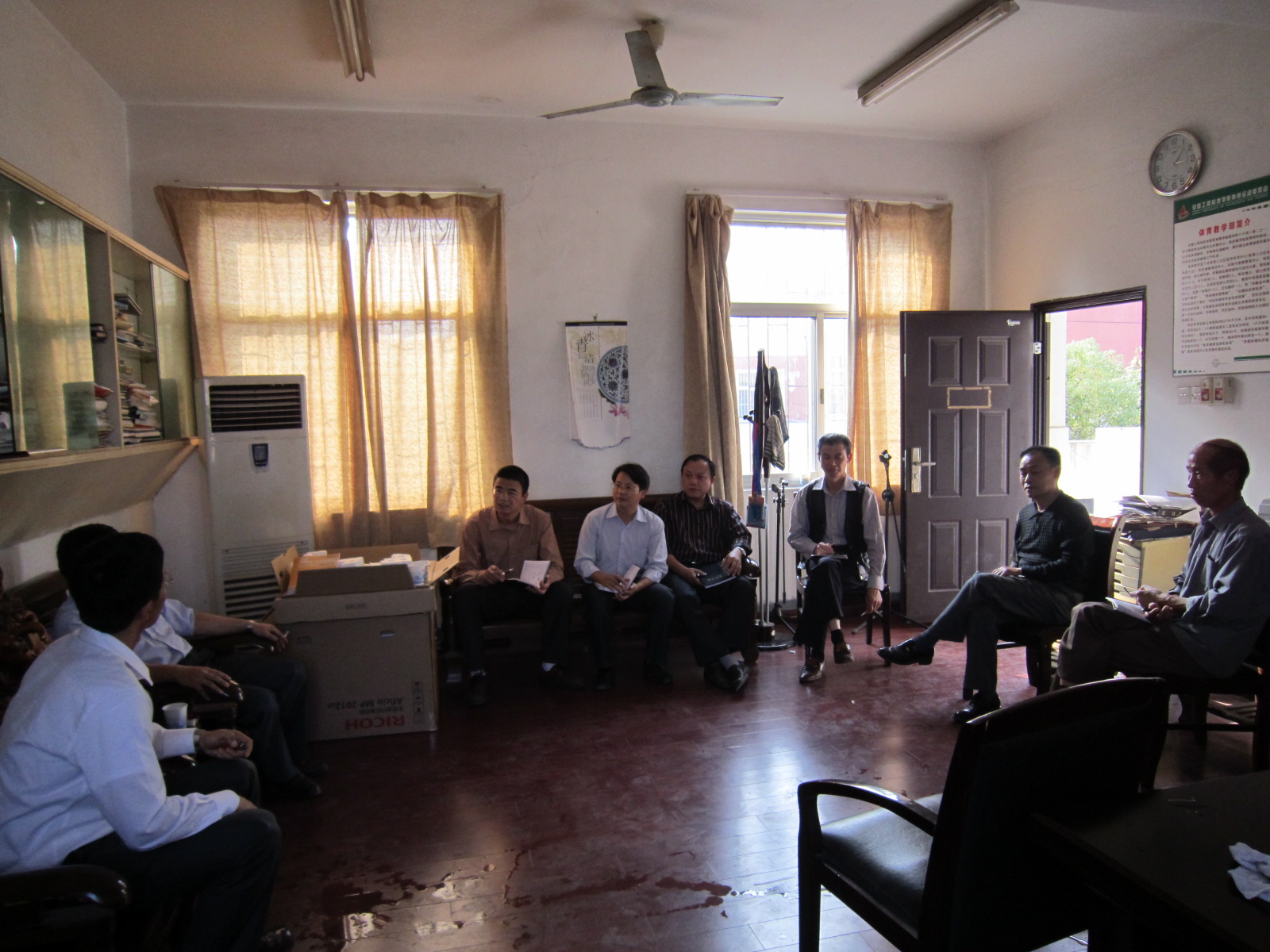 为切实做好后勤服务保障工作, 10月10日下午,集团总经理魏长顺、副总经理纪天新、李敬华,带领各中心负责人集体走访了体育学院、机电学院,受到各学院领导热情接待。集团一行认真听取了学院领导对后勤工作的意见和要求,收获了很多宝贵的建议。双方就学生宿舍管理、食堂供应保障、维修服务等方面后勤服务保障工作进行了广泛交流和探讨,并就安徽省大学生篮球联赛期间有关电力保障、盒饭供应、环境卫生等服务保障工作进行了具体交流和对接。