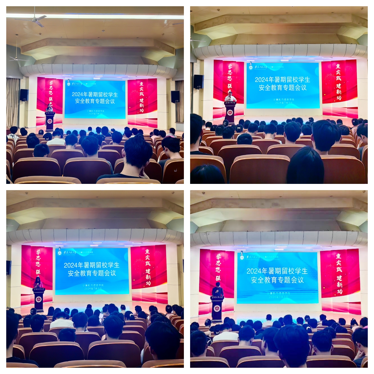 7月3日,学院在学术报告厅召开2024年暑期留校学生安全教育动员会,辅导员陈涛领学学校《关于做好2024年暑假留校学生管理服务工作的通知》,杨玉和杨金盛作为暑期留校学生代表宣读了《暑期留校安全承诺书》,承诺服从集中住宿安排和管理,严格遵守学校各项规章制度,自觉注意安全防范。