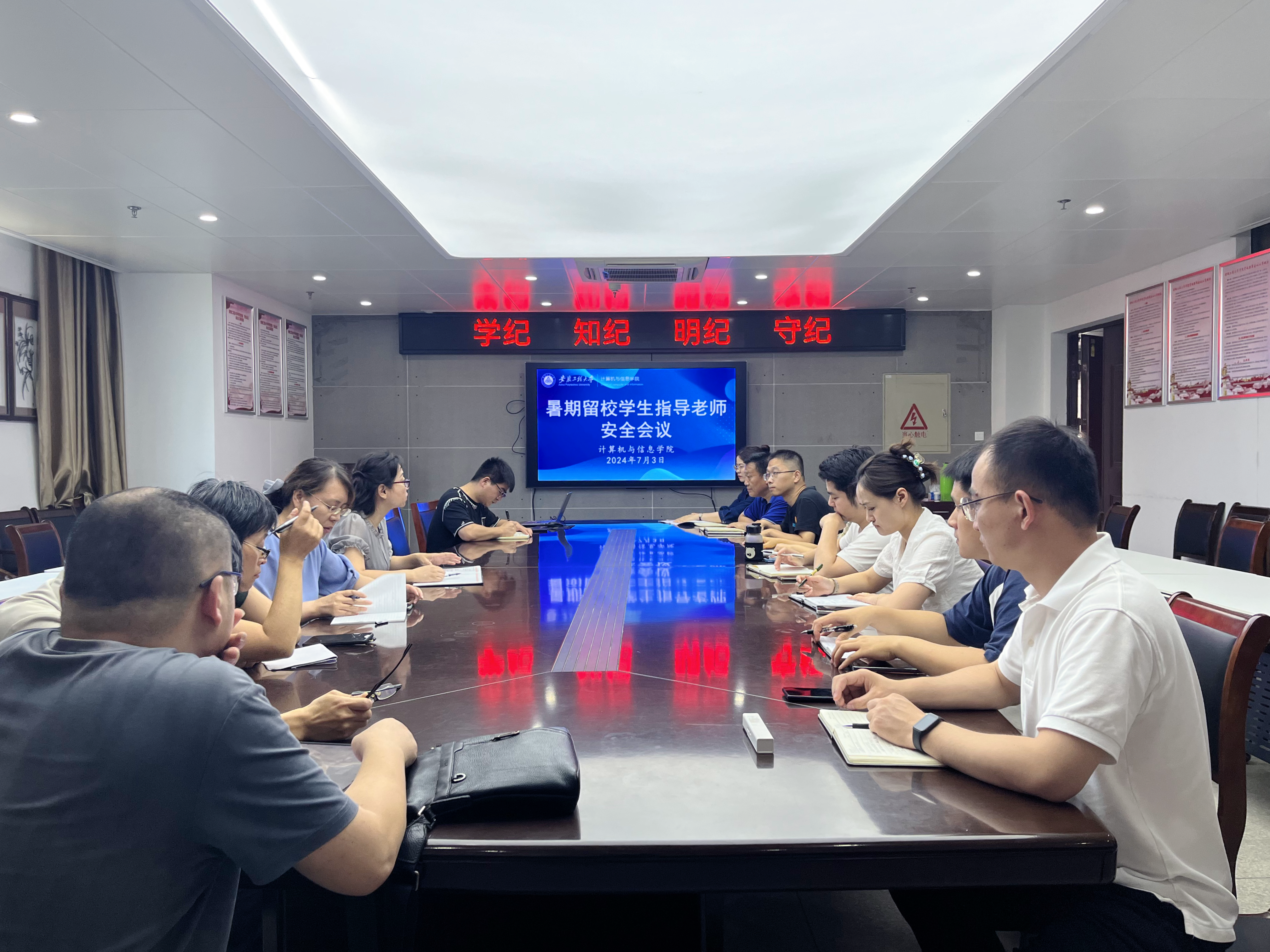 本网讯 为进一步加强暑期留校学生的安全教育和管理服务工作,引导留校学生做好考研复习、学科竞赛、体育训练、社会实践等工作,加强学生教育管理服务,确保安全稳定底线,计算机与信息学院召开系列安全教育会议,做实做细2024年暑期留校学生安全教育管理工作。