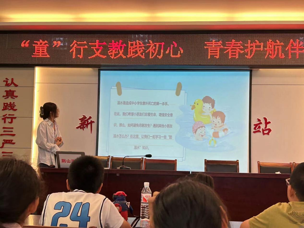 本网讯 为团结、教育、引领少年儿童努力成长为能够担当民族复兴大任的时代新人,7月7日,经济与管理学院“青春有我志愿队”前往凯旋社区开展了暑期防溺水主题宣传教育。