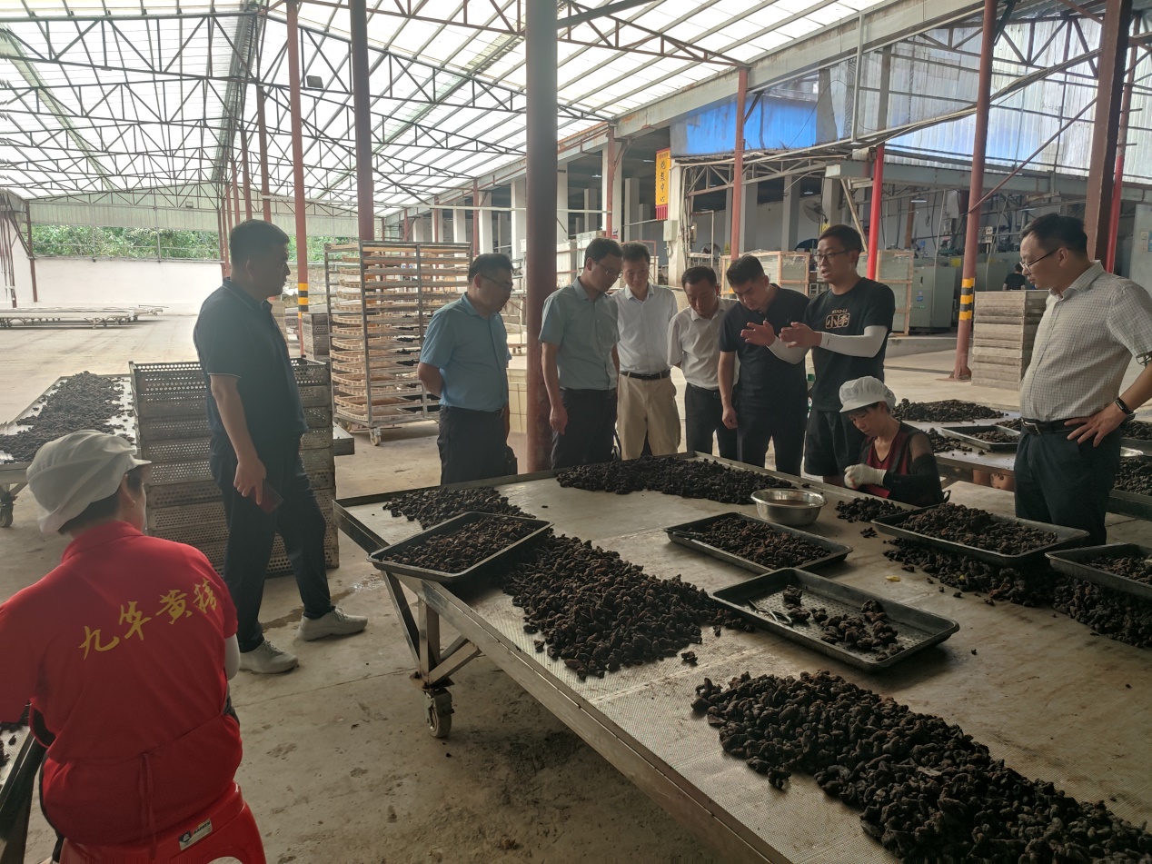 在市农业农村局副局长李志兴的陪同下,王建平一行对适四时农业股份有限公司进行了深入调研。该公司专注于国家地理标志产品—九华黄精的种植、生产、加工与销售,是全国知名的黄精特色加工企业。教师们参观了九华黄精的生产加工车间,详细了解了黄精食品的加工工艺和生产流程。在调研过程中,双方就黄精加工中遇到的易化糖粘合、切片粘刀、分选和破碎等技术难题进行了深入的交流和探讨。