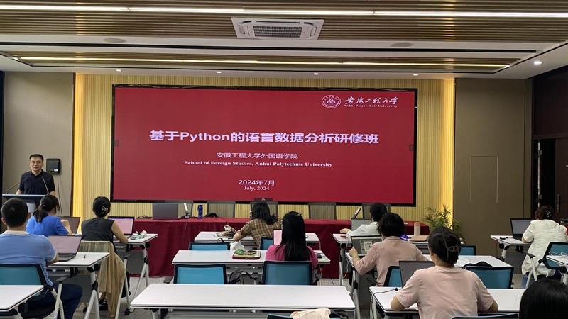 本网讯 7月8日-11日外国语学院成功举办了2024年暑期“基于Python的语言数据分析”研修班,本次研修班吸引了来自省内外的20余名教师和研究生参加,共同探讨和学习如何利用Python进行语言数据的分析和处理。外国语学院王家银和徐鹏老师担任主讲教师。
