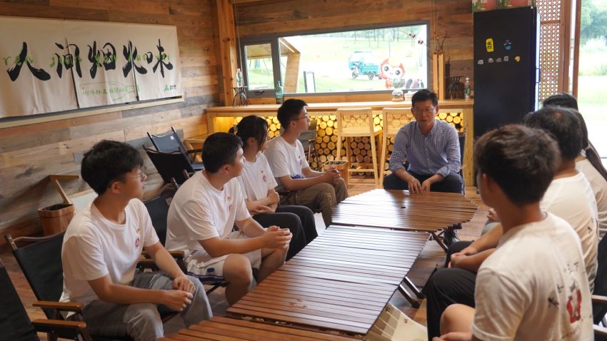 7月11日,调研团队开展以“共话乡村新发展”为主题的鸠兹夜谈会议,芜湖鸠兹湾艺创产业园有限公司总经理朱新根受邀参加会议,并为团队成员们详细介绍了鸠兹湾艺创产业园的运营情况,为调研团队答疑解惑。他指出,鸠兹湾艺创产业园通过以“艺创+”为动力源泉,实现对鸠兹湾农业全产业链、区域全方位立体赋能,以艺术创意为乡村发展引擎,探索一条农业强、农村美、农民富的可持续发展之路。会上,团队成员们畅所欲言,分享各自对乡村振兴的理解,一致表示要以青年大学生的视角,去探索鸠兹湾进一步发展的可能和路径,为建设和美乡村建言献策、贡献青年力量。