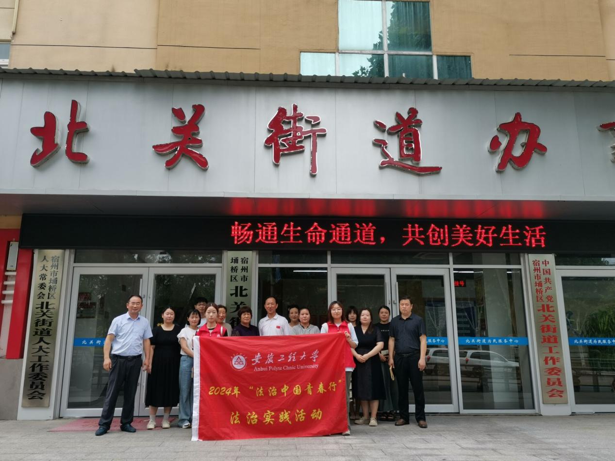 本网讯 为深入学习贯彻党的二十大精神和习近平法治思想,彰显青年使命担当,7月16日,人文学院普法师生一行赴宿州市埇桥区北关街道开展“法治中国青春行”暑期法治实践活动。