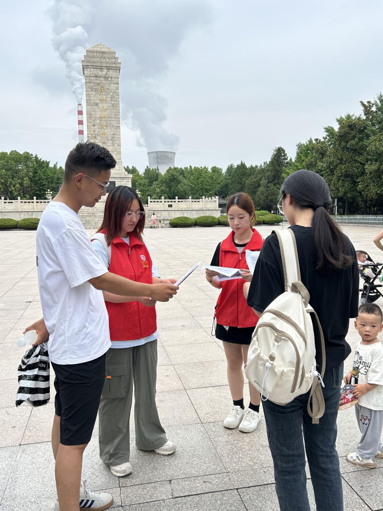 普法师生走进彭雪枫纪念馆追溯红色记忆,并在附近公园和社区发放宪法和民法典等普法宣传资料,向群众宣传习近平法治思想。