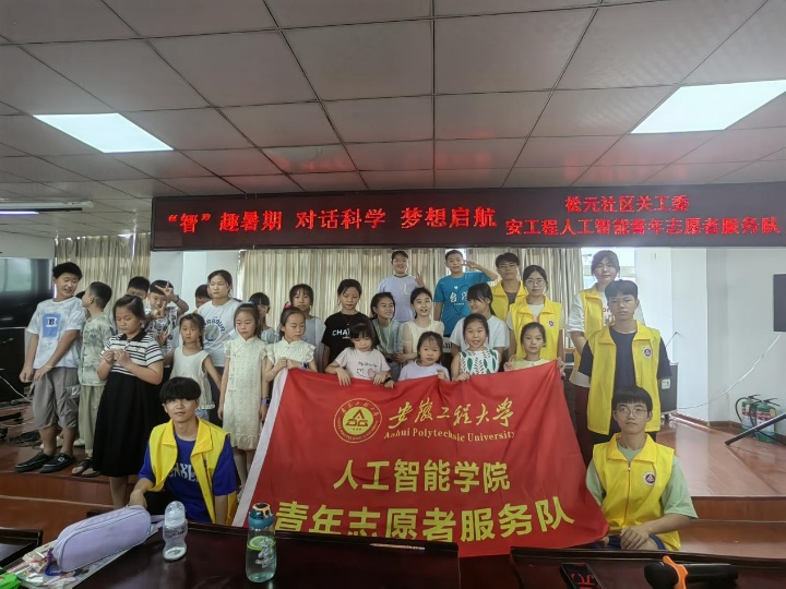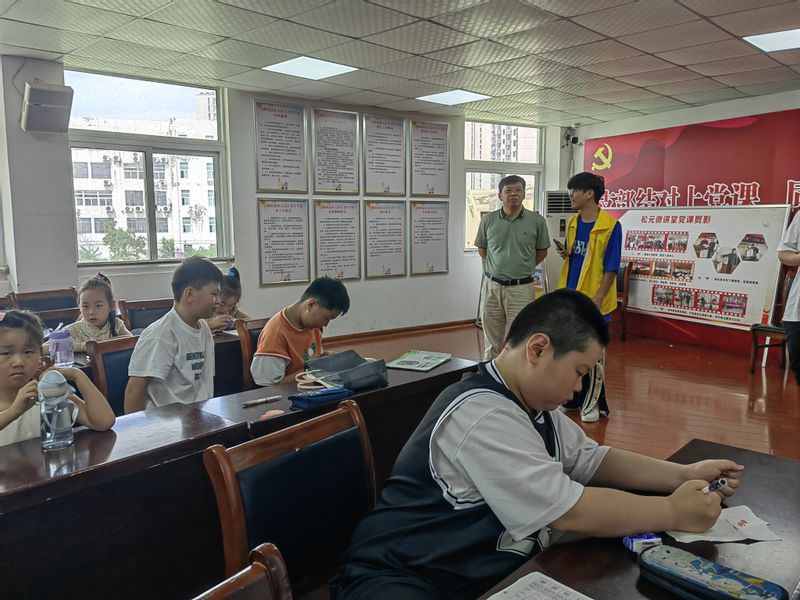 本网讯 随着暑期的深入,由松元社区关工委、人工智能学院“彩虹课堂”志愿服务队联合开展的“暑期托管班”在松元社区如火如荼进行。7月19日,人工智能学院党委书记任家钱、党委副书记李文江一行赴松元社区走访慰问了“彩虹课堂”志愿服务队,深入了解团队开展活动情况。