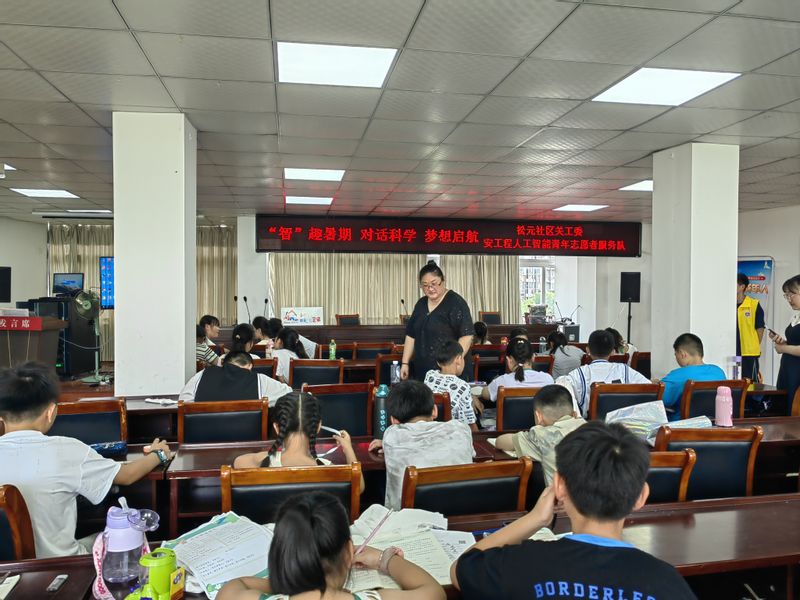 学院领导与团队共同协助了社区儿童的课后帮扶,耐心地询问了小朋友的作业情况,日常的课程和课后娱乐活动,并积极鼓励小朋友们认真学习人工智能专业小常识,以后为中国新质生产力做贡献。在每日的课后辅导、科普课堂结束后,团队与小朋友们共同开展了互动游戏,让小朋友们在紧张的学习后,放松身心。简笔画、手工制作、五子棋,活动室充满了欢声笑语。
