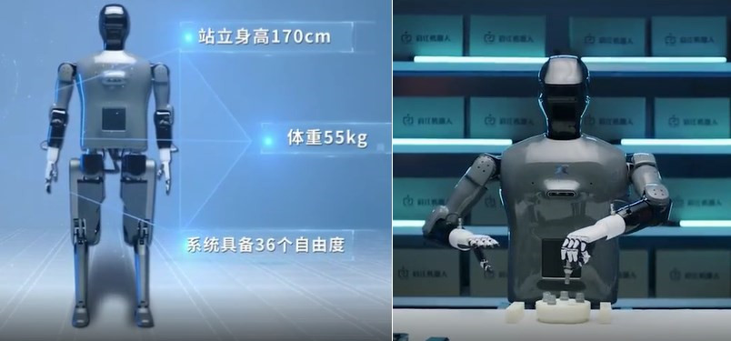 在活动现场,由江淮前沿技术协同创新中心自研的安徽首款人形机器人整机产品“启江一号”精彩亮相。该款人形机器人全身拥有36个自由度。