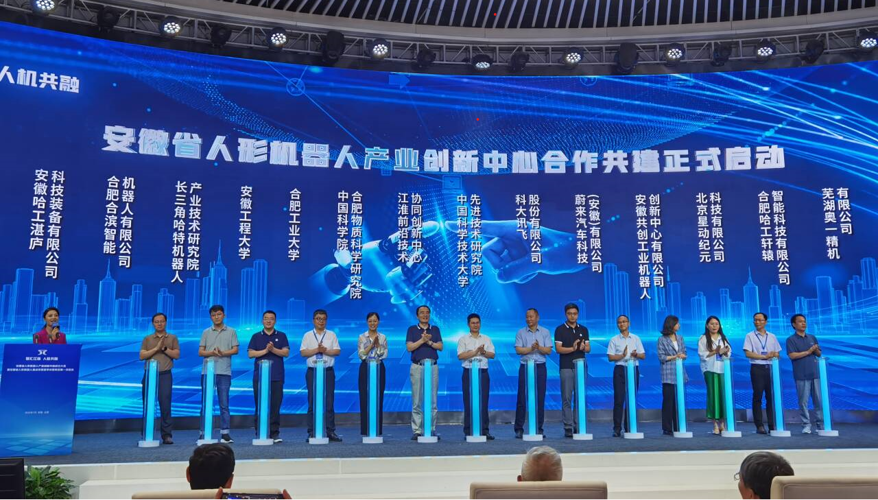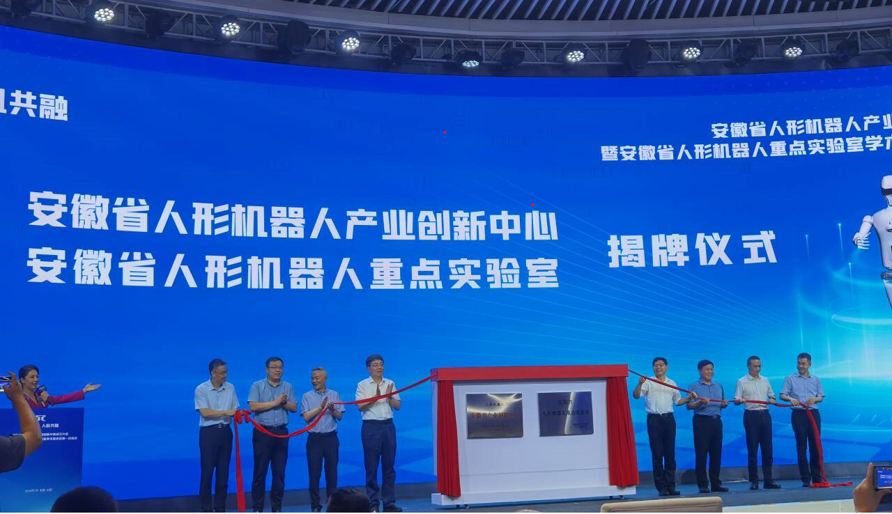 本网讯 7月19日,安徽省人形机器人产业创新中心暨安徽省人形机器人重点实验室揭牌仪式在合肥中安创谷全球路演中心举行,我校科技处副处长(主持工作)王宗乾、人工智能学院副院长江本赤参加揭牌仪式。安徽省科技厅党组书记吴劲松,安徽省科技厅副厅长李国阳,安徽省工信厅副厅长姚凯,安徽省发改委二级巡视员汪毅,合肥市委常委、副市长袁飞出席活动。
