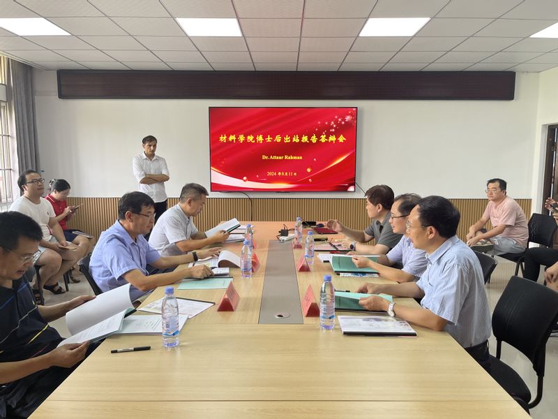 本网讯 8月11日,材料科学与工程学院在B座520会议室进行了Attaur Rahman博士后的出站报告答辩会。南京大学张善涛教授,中国科学院上海硅酸盐研究所陈学锋研究员,杭州电子科技大学宋开新教授及我校化学与环境工程学院李品华教授、彭昌盛教授应邀担任专家组成员,博士后导师左如忠教授及学院部分老师参加会议。张善涛担任专家组组长并主持出站考核会。
