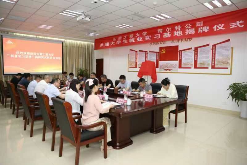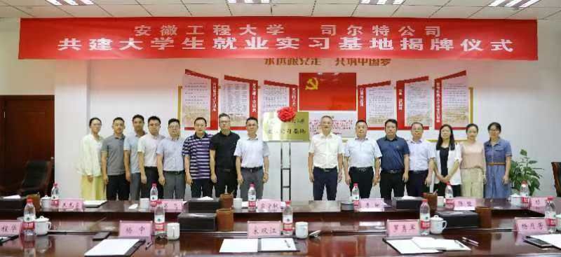 本网讯 为进一步强化校地合作、助力高质量人才培养,8月15日,生物与食品工程学院赴宁国市,与安徽省司尔特肥业股份有限公司开展大学生就业实习基地揭牌仪式。宁国市科技局局长窦宁枫、党组成员李甜、科技合作科科长顾芳、司尔特股份公司副总经理兼营销中心总经理杨中、总经理助理兼科技公司总经理胡程华、总经理助理宋双江等出席活动,生物与食品工程学院院长葛飞、朱龙宝教授、生物工程系主任、团委副书记等参加活动。