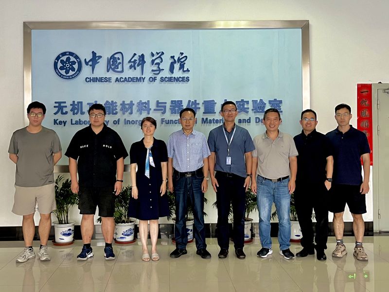 8月20日,左如忠一行还走访了上海硅酸盐研究所无机功能材料与器件重点实验室及其科研团队,与实验室主任王根水研究员、压电陶瓷材料与器件课题组组长梁瑞虹研究员、中国科学院特聘核心研究员陈学锋和聂恒昌等人座谈交流,并实地参观了压铁电材料及器件的生产车间。双方就人才培养、项目合作、科技奖联合申报以及关键材料技术改进等方面进行了深入探讨,达成了多方面的合作意向。
