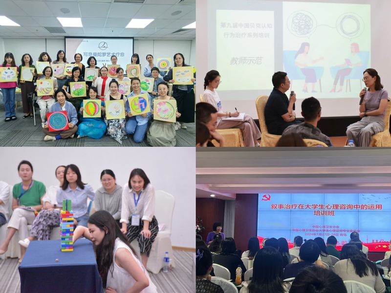 提升专兼职咨询师专业化业务水平。围绕我校心理健康教育工作的专业化、规范化发展,分批次组织专兼职咨询师参加第九届中国贝克CBT系列培训(第二期)、心理拓展实操技术高级班专项技能培训、写意曼陀罗艺术疗法、叙事治疗初阶培训等,通过理论授课、教师示范、小组体验式练习、答疑反馈以及临床实践督导等多元化、专业化授课模式,帮助咨询师深入掌握个案概念化、认知干预、行为激活、叙事治疗等理论、技术,提升在实际情境中运用各类技术的能力。