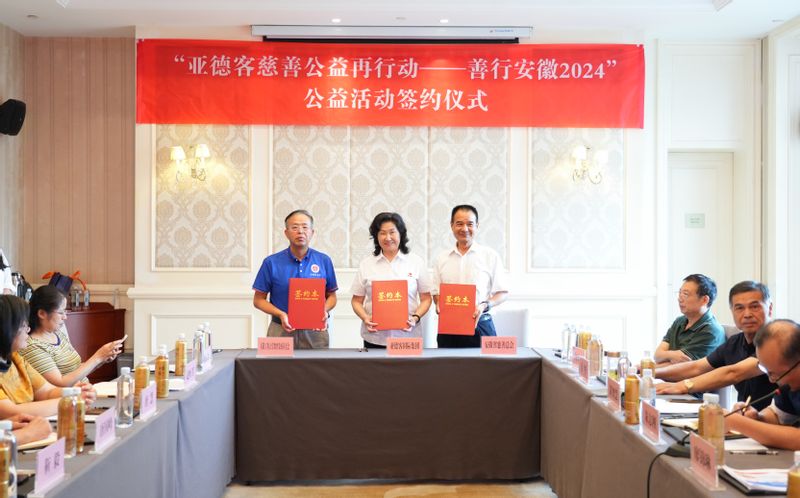 本网讯 2024年8月27日,亚德客国际集团携手安徽省慈善总会在安徽饭店举行“亚德客慈善公益再行动——善行安徽2024”公益项目签约仪式。亚德客国际大陆事业群专案经理廖锦琳、区域总监方双全、安徽省慈善总会常务副会长张冬云、副会长兼秘书长濮宜平以及校教育发展基金会秘书长陶玉贵等受赠单位代表、特邀嘉宾共30多人参加了签约仪式。仪式由安徽省慈善总会副会长吴良仁主持。