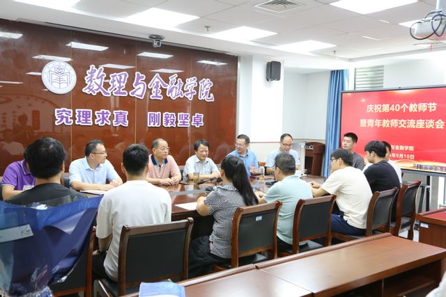本网讯 9月10日,数理与金融学院开展庆祝第40个教师节暨青年教师交流座谈会活动,学院党政领导、老教师代表、青年教师代表参加,活动由学院党委副书记、院长吴小太主持。