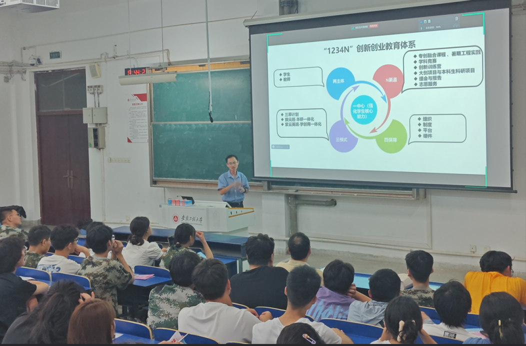 创新创业教育中心主任修宇为大家介绍了基于学科专业特色的创新创业教育。修宇从几组数据说起,为新生讲解了学院创新创业教育的丰硕成果;向学生展示了中心的发展历程及“1234N”创新创业教育体系和9个创新开放活动室,进而鼓励新生积极加入学院创新创业团队中来锻炼和提升自身的综合素质;现场同学踊跃提问,气氛十分热烈。