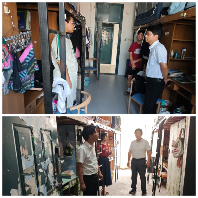 会前水心宝、刘海涛及全体辅导员还深入学生宿舍认真了解学生实际的生活、学习和工作,并在走访过程中认真查看宿舍相关环境和设备,提醒同学们注意防火、卫生、用电等安全知识,还引导同学们加强人际交往,共同营造积极向上、和美温馨、拼搏进取的院风、室风。