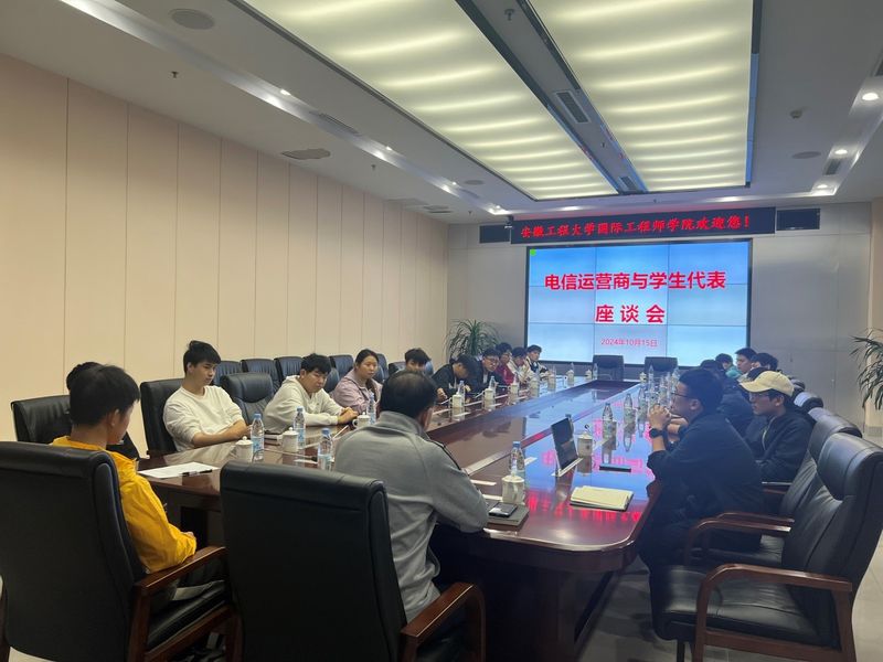 本网讯 10月15日,国际工程师学院校区管委会在图文信息中心无纸化会议室召开电信运营商和学生代表座谈会,座谈会由信息科赵翔主持,综合办公室、芜湖移动、芜湖电信和芜湖联通三家电信运营商的客户经理和装维负责人、学生代表等23人参加。