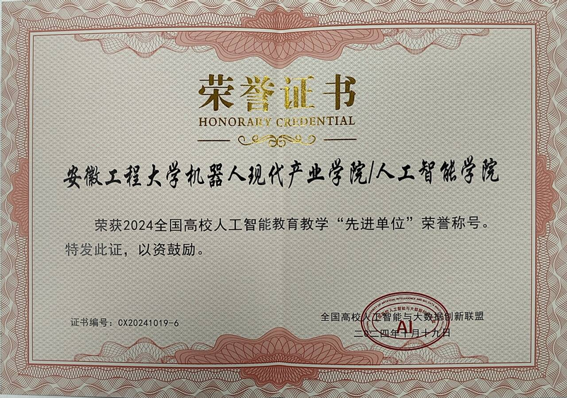 人工智能学院荣获2024全国高校人工智能教育教学“先进单位”荣誉称号