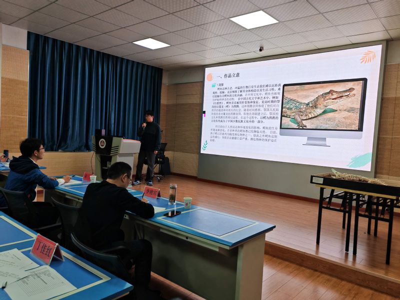 本次大赛分为创新创意组、动物组和植物组三个赛道进行比赛,决赛采用作品现场展示与答辩相融合方式进行。在作品展示和现场答辩环节中,评审专家就作品立意、制作过程、采用的技术与方法、主要创新点等四个方面进行细致地点评,并对后续改进提出了科学的建议,令学生们受益匪浅。本次大赛作品主题新颖多样,构思巧妙、制作精美、寓意深刻。经过评委现场打分,作品观摩,最终选出8组作品代表学校参加2024年安徽省大学生生物标本制作大赛。
