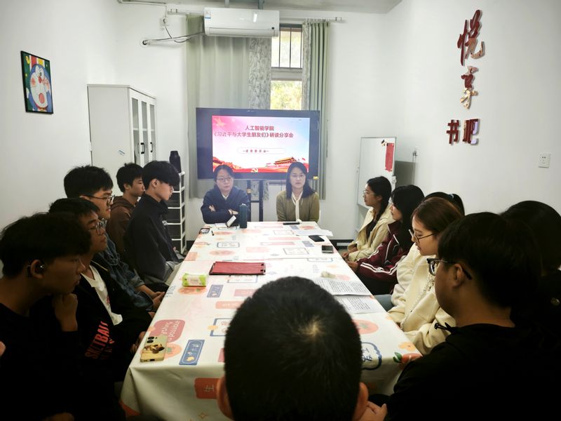 本网讯 为了深入学习贯彻习近平总书记关于青年工作的重要思想,特别是他在与大学生朋友们交流中的重要论述和指示精神。10月20日,人工智能学院读者委员会在学院一站式社区“青年之家”学生会服务站开展《习近平与大学生朋友们》研读分享会。学院党委副书记李文江、学院团委副书记苑雨露及20余名学生代表参加研读分享会。