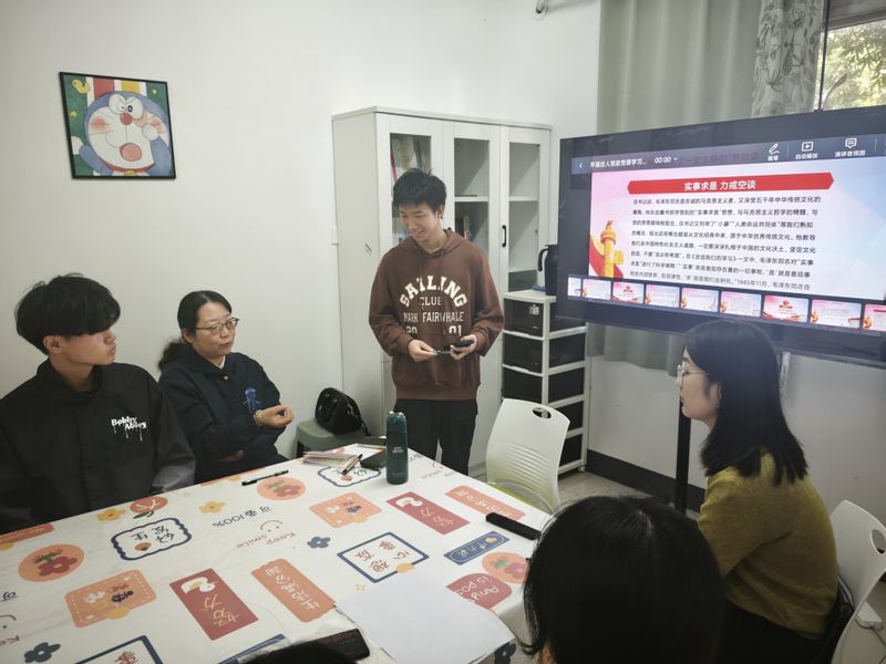 读者委员会成员黄浩向大家介绍了《习近平与大学生朋友们》的主要内容并领学了第一卷部分内容。对书中习近平总书记与大学生们交往交流交心的故事,对大学生始终如一的关注关心关爱进行心得分享。人工智能244黄潇滢在交流中说“作为新时代青年,在党的关爱和呵护下,沐浴着党的光辉,跟随着党的步伐茁壮成长。我们有责任,也有义务好好学习,健康成长,为祖国的发展添砖加瓦,贡献属于我们的一份力量。”人工智能242陈烨表示:“作为青年,不仅要怀揣远大的理想抱负,还要脚踏实地,通过不懈的奋斗去实现这些理想。这种积极向上的精神激励着我们不断前行,追求卓越。”人工智能242宋羿慧说,“在大学的学习和生活中,我得到了许多人的关心和帮助。我要时刻保持一颗感恩的心,用自己的实际行动去回报社会、帮助他人,为社会的和谐稳定贡献自己的一份力量。”