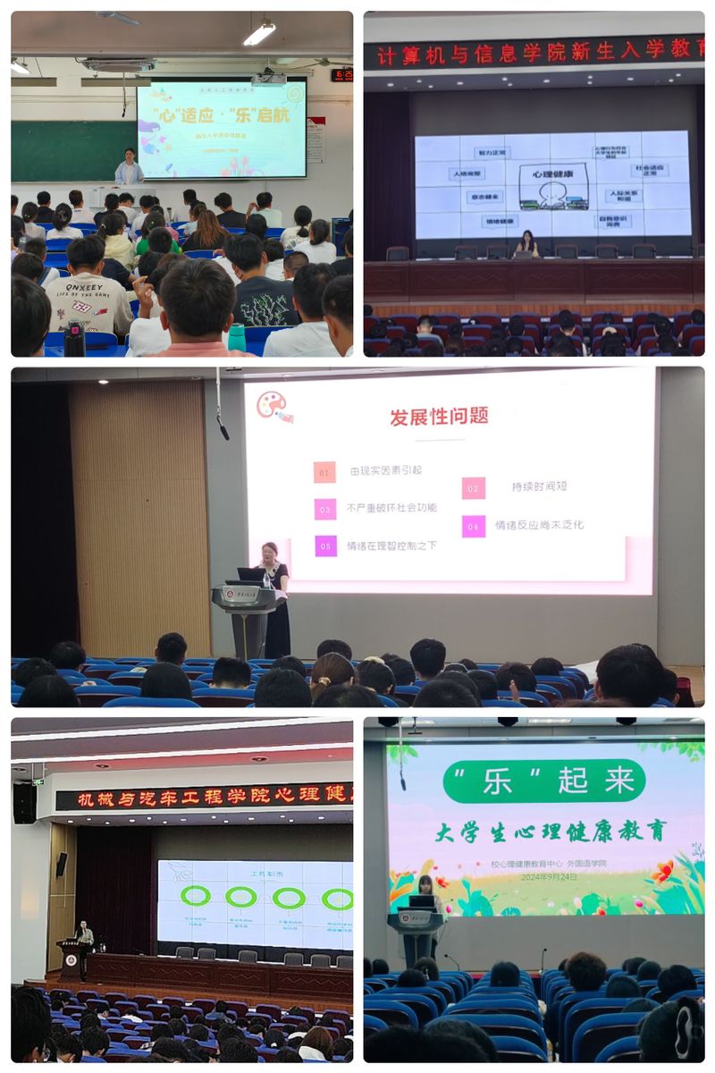 本网讯 为进一步贯彻《全面加强和改进新时代学生心理健康工作专项行动计划(2023—2025年)》文件精神及学校“三全六专”育人实践的部署要求,增强新生的适应性,培养自我调整、自我管理、自我控制的能力。心理健康教育中心于9月11日至10月30日面向2024级6800余名本科生与研究生组织开展入学适应性教育,共举办24场新生入学适应性讲座与多场适应性活动,实现新生全覆盖。主讲教师团队由心理健康教育中心主任金艾裙、副主任杜松涛、专职咨询师李梦圆、程香娟、李梦菊和钱圆圆组成。