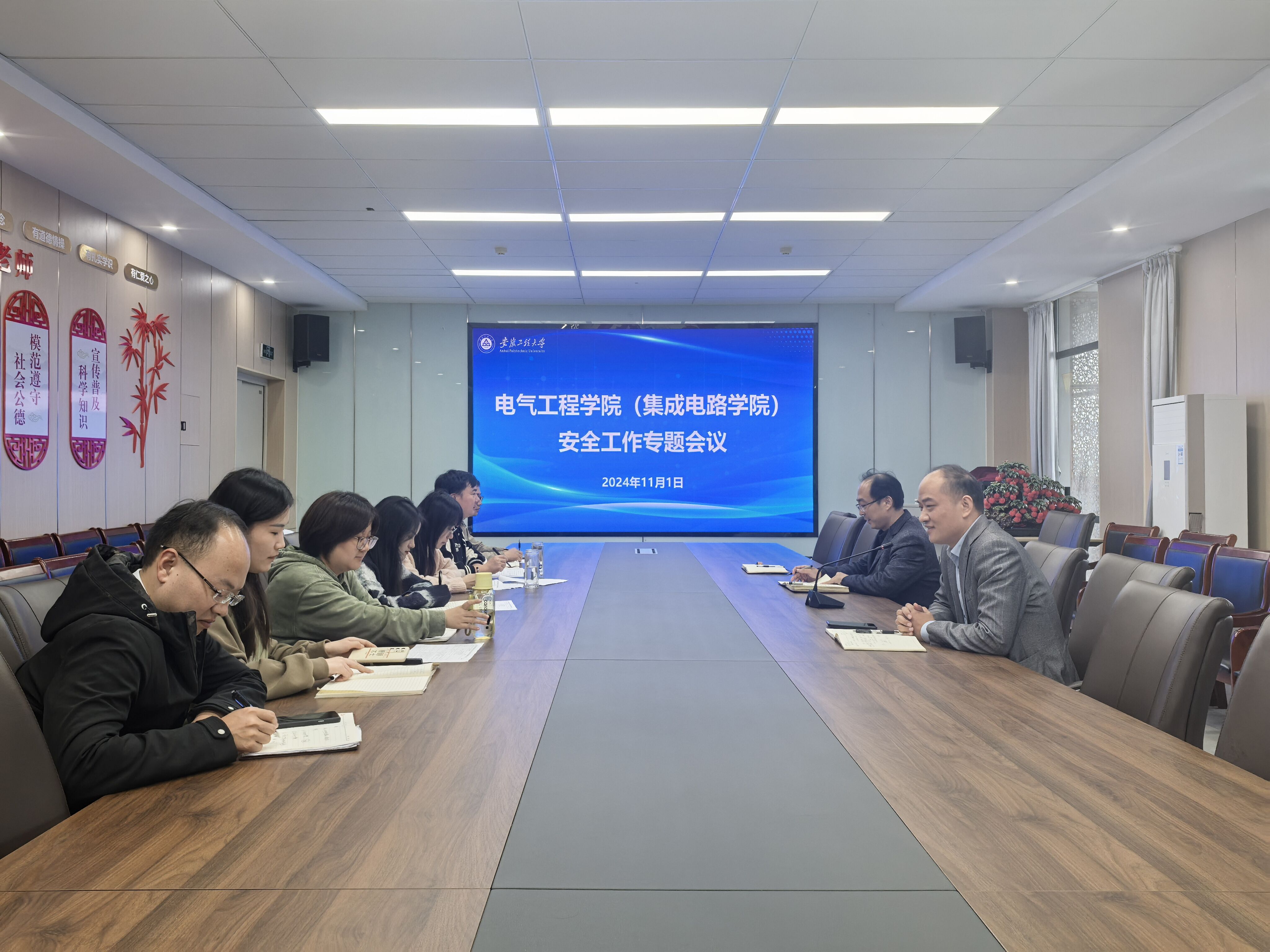 本网讯 为进一步规范和加强学院安全工作,提升学院师生的安全意识和防范能力,11月1日,电气工程学院(集成电路学院)在龙胜楼206召开安全工作专题会议。学院院长葛愿、党委副书记迟传德以及全体辅导员参加会议,会议由迟传德主持。