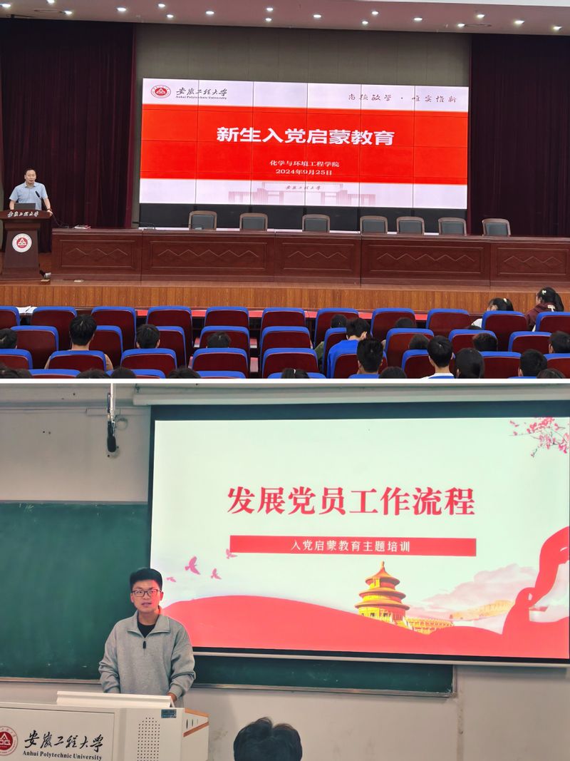 本网讯 为提高新生对中国共产党的认识,增进对党的基本知识的认识,帮助青年学子知党、信党、入党,引导广大新生听党话跟党走,了解入党流程、端正入党动机,激发入党积极性,并为新生在政治上积极进取创造必要的条件,按照早教育、早发现、早培养的原则,结合化学与环境工程学院实际,学院党委在学院2024级新生中积极开展新生入党启蒙教育。