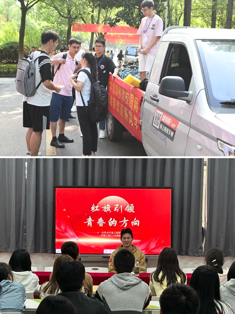 学院成立以学生党员带头的志愿迎新服务队,设立“党员示范岗”,充分发挥党员先锋模范带头作用。志愿者们身着统一的服装,以最饱满的热情迎接每一位新生的到来,他们穿梭于校门口、宿舍楼及报到现场,为新生提供行李搬运、路线指引、答疑解惑等服务。组织优秀大学生党员和表现突出的大学生入党积极分子与新生面对面,以大学生熟悉的语言,讲述青春奋斗故事、交流学习经验心得,用学生身边可见、可感、可接触的榜样人物和事迹案例激励和引导新生正确开启大学生活。他们以自身坚定的信仰追求、过硬的专业本领和良好的人格魅力,使新生感受到榜样的力量,在共鸣中增长知识、受到启迪,坚定理想信念,奋发进取。