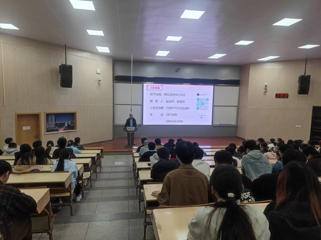 本网讯 为帮助毕业生缓解考研、就业压力,11月12日,数理与金融学院在2教报告厅开展“释放压力,坚毅前行”毕业生主题教育活动。学院党委副书记何志恒、校心理健康教育中心专职咨询师李梦菊、校武装部赵成婧及学院2025届全体毕业班学生参加。