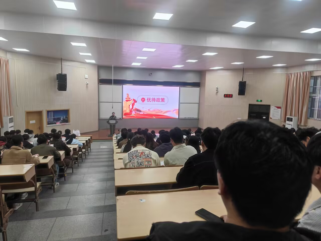 退伍士兵朱恺悦同学和大家分享了军旅生活,两年的入伍经历让她学会了如何在困境中找到希望,使自己变得更加坚强和勇敢。赵成婧为毕业生详细讲解了征兵入伍的相关流程和优抚政策,加深了同学们对参军入伍政策的了解,强化了国防观念,坚定了应征入伍、报效祖国的决心。