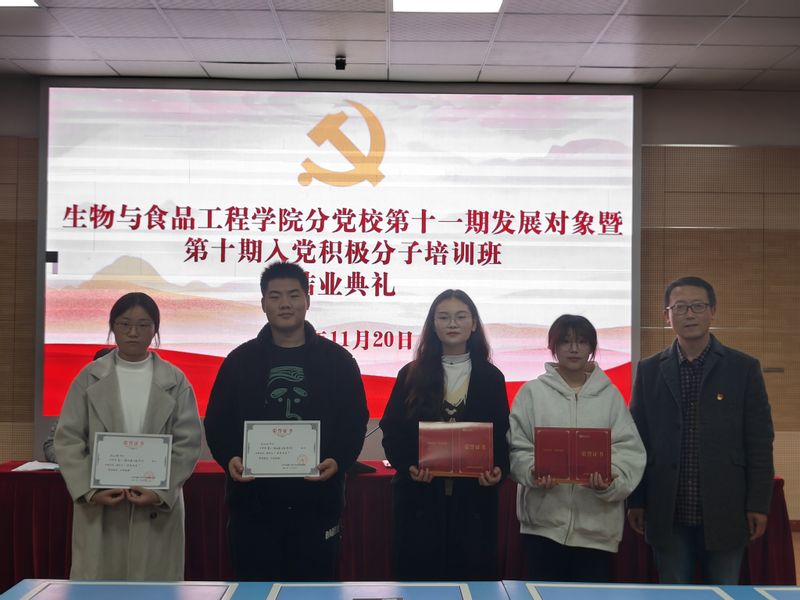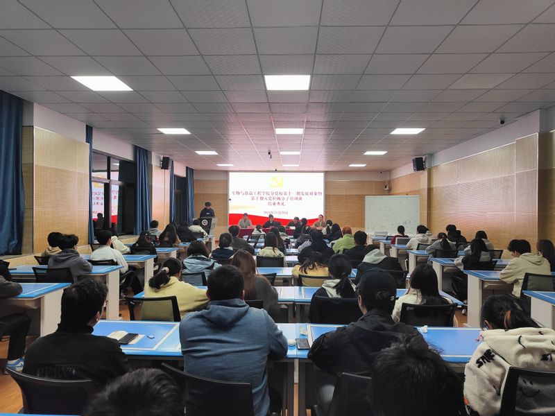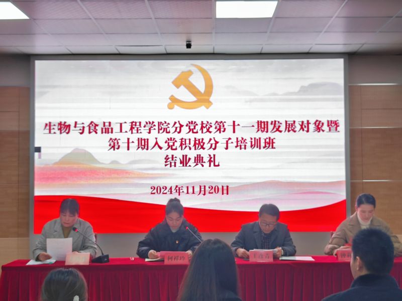 本网讯 11月20日,生物与食品工程学院分党校在学院虚拟仿真中心举办第十一期发展对象暨第十期入党积极分子培训班结业典礼。本期培训班全体学员参加结业典礼,学院党委副书记王彦青、学院团委负责人、辅导员代表出席典礼,典礼由培训班班主任王玲玲主持。