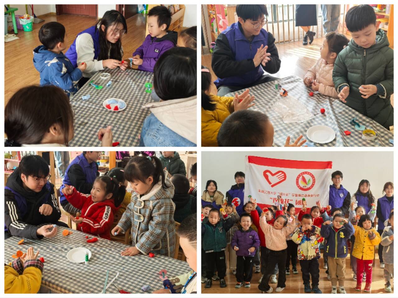 巧手制“团圆”,童梦文化牵。12月6日,外国语学院的同学们来到校附属幼儿园中(2)班,开展了“巧手制‘团圆’童梦文化传”主题活动。主持人以一幅“青蛙包饺子”的漫画图片激起了小朋友们对冬至习俗的兴趣,小朋友们你一言、我一语,围绕冬至习俗展开热烈讨论。现场播放了一段视频,向小朋友们介绍了古人庆祝冬至的传统方式,小朋友们还一起学习了冬至和饺子的英文表达方式。在同学们的帮助下,小朋友们认真制作了弹簧小汤圆和粘土饺子等手工作品,并开心地向他人展示了自己的成果。